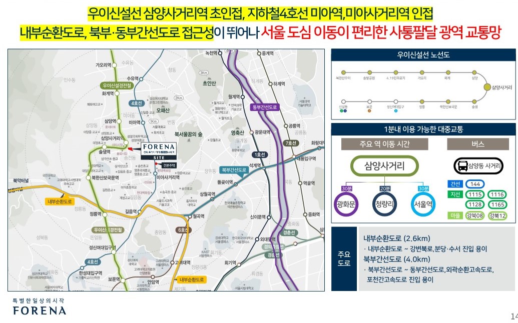 우이경전철 1분 이내 인접 - 지하철 광화문역 30분 소요