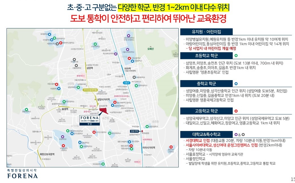 삼양초,미양초,송천초,영훈사립초·중·고 인접 미양중,성암국제무역고,서경대 1km 내 위치